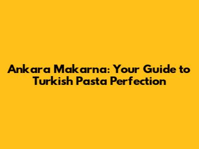 Unveiling Ankara Makarna: What Makes it Special?