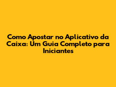 Apostas Caixa: Guia Completo No App Para Iniciantes