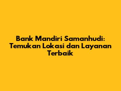 Hey guys! Buat kalian yang lagi cari info lengkap tentang Bank Mandiri Samanhudi, kalian datang ke tempat yang tepat. Artikel ini bakal ngebahas tuntas semuanya, mulai dari lokasi kantor cabangnya yang strategis, jam operasionalnya, sampai berbagai layanan perbankan keren yang bisa kalian nikmati. Jadi, stay tuned ya!