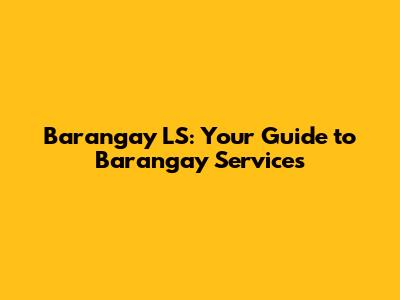 Understanding the Role of Barangay LS in Your Community