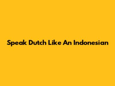 Speak Dutch Like An Indonesian