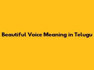 Beautiful Voice: What's It Called In Telugu?