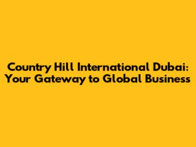 The Future of Business Expansion with Country Hill International Dubai