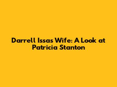 Hey everyone, let's dive into the life of Darrell Issa and his wife, Patricia Stanton! If you're curious about the couple and their journey, you've come to the right place. We're going to explore their relationship, background, and the impact they've made. Buckle up, because we're about to uncover some interesting details about Patricia Stanton, the woman behind the prominent political figure, Darrell Issa.