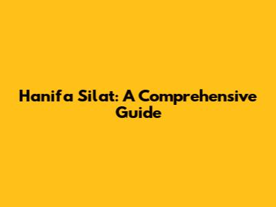 Hanifa Silat: A Comprehensive Guide