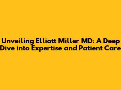 Unveiling Elliott Miller MD: A Deep Dive into Expertise and Patient Care