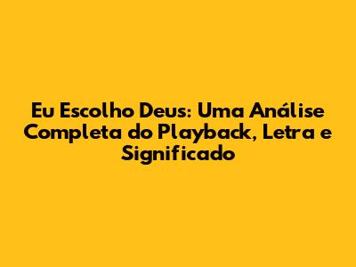 "Eu Escolho Deus" é um hino que nos lembra que, em meio aos desafios da vida, podemos encontrar força e esperança em Deus. É uma música que nos convida a colocar Deus em primeiro lugar, a confiar em Sua orientação e a viver uma vida de fé e entrega. Que esta análise completa do playback, letra e significado de "Eu Escolho Deus" inspire você a aprofundar sua conexão com Deus e a compartilhar essa mensagem de esperança com o mundo. Que cada vez que você ouvir ou cantar essa música, seu coração seja tocado pela presença de Deus e sua fé seja renovada.