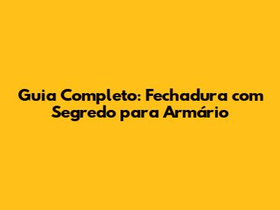 Guia Completo: Fechadura Com Segredo Para Armário