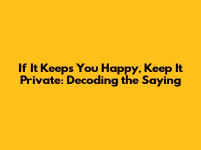 Hey guys, ever heard the phrase, "If it keeps you happy, keep it private"? It’s one of those sayings that floats around, and honestly, it makes a lot of sense when you break it down. Essentially, this mantra is all about personal peace and happiness. It’s a gentle reminder that not everything in your life needs to be shared with the world. Some things are just for you, and that’s perfectly okay! Think about it – we live in a world where everyone seems to be sharing every little detail of their lives online. From what they ate for breakfast to their deepest thoughts, it’s all out there. While sharing can be great, it can also lead to unnecessary opinions, judgment, and even negativity. This is where the wisdom of keeping certain things private comes in. It’s about protecting your joy from the outside noise. It’s about understanding that your happiness doesn’t require validation from others. When you find something that brings you genuine happiness, whether it's a new hobby, a personal goal, a relationship, or even just a quiet moment of contentment, sometimes the best thing you can do is hold onto it closely. Sharing it might seem like the natural thing to do, but consider the potential downsides. Could sharing it invite criticism? Could it lead to unsolicited advice that sours the experience? Or perhaps, by constantly seeking external affirmation, you dilute the pure joy you initially felt?