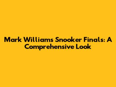 Mark Williams Snooker Finals: A Comprehensive Look