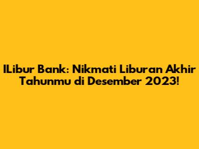 ILibur Bank hadir untuk menemani liburan akhir tahunmu di Desember 2023! Guys, siap-siap buat merencanakan liburan seru karena kita punya banyak banget informasi menarik seputar libur bank yang bisa kamu manfaatkan. Dengan mengetahui jadwal libur bank, kamu bisa mengatur keuangan dan aktivitasmu dengan lebih baik. Jangan sampai rencana liburanmu terganggu karena salah informasi ya! Yuk, simak detail lengkapnya!