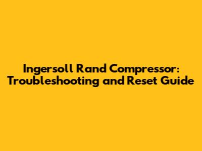 Ingersoll Rand Compressor: Troubleshooting And Reset Guide