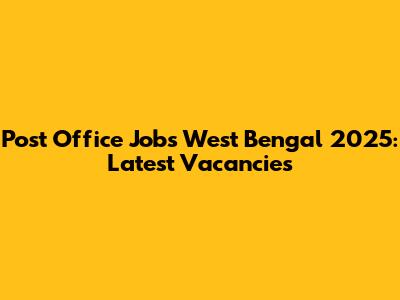 Post Office Jobs West Bengal 2025: Latest Vacancies