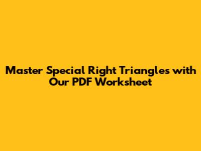 Hey there, math whizzes and aspiring geometers! Today, we're diving deep into the awesome world of special right triangles. You know, those magical triangles that pop up everywhere in geometry, trigonometry, and even in real-world applications like construction and design. We're talking about the 45-45-90 and the 30-60-90 triangles. These aren't just any old triangles; they have special relationships between their sides that make solving problems a breeze once you get the hang of it. If you've ever struggled with finding missing side lengths or just wanted a quicker way to tackle those tricky triangle problems, you're in the right place. Our special right triangles worksheet PDF is designed to guide you through understanding and mastering these concepts. We’ll break down the properties, explore the formulas, and give you plenty of practice to solidify your knowledge. So, grab your pencils, maybe a protractor if you're feeling fancy, and let’s get ready to conquer special right triangles together!