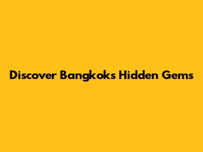 Discover Bangkok's Hidden Gems