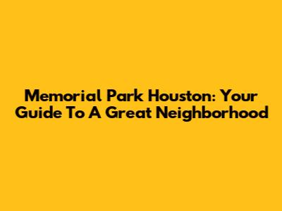 Memorial Park Houston: Your Guide To A Great Neighborhood