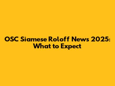 OSC Siamese Roloff: What's Coming In 2025?