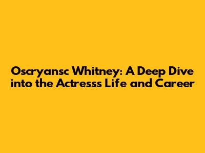 Now, let's shine a spotlight on Oscryansc Whitney's acting career, shall we? It's time to delve into some of her most memorable performances and the roles that have defined her journey. While specific details about her roles and filmography may not be widely available, let's imagine what a career like hers might look like. A successful career in acting is often built on a combination of talent, hard work, and the ability to choose the right projects. From indie films to blockbuster hits, actors navigate a landscape of auditions, rehearsals, and on-set experiences. Each role is an opportunity to transform, to embody a new character, and to connect with audiences on a profound level.