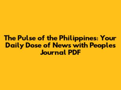 The People's Journal newspaper today Philippines PDF isn't just a digital file; it's your connection to the heart of the nation. It’s where you’ll find the stories that matter, from the halls of power to the streets in your neighborhood. It provides a comprehensive view, balancing critical national issues with the lifestyle and entertainment that enrich our lives. By embracing the digital format, you're choosing a smarter, more efficient, and more sustainable way to stay updated.