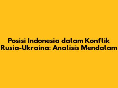 Posisi Indonesia dalam konflik Rusia-Ukraina secara resmi adalah netral. Artinya, Indonesia tidak berpihak pada salah satu pihak yang berkonflik. Namun, netralitas ini bukan berarti Indonesia bersikap pasif. Sebaliknya, Indonesia aktif dalam upaya-upaya diplomatik untuk mencari solusi damai. Prinsip politik luar negeri bebas aktif menjadi landasan utama bagi posisi Indonesia di konflik Rusia-Ukraina. Bebas berarti Indonesia berhak menentukan sikap dan kebijakannya sendiri tanpa terpengaruh oleh kekuatan asing mana pun. Aktif berarti Indonesia berpartisipasi secara aktif dalam penyelesaian masalah-masalah internasional dan berkontribusi pada perdamaian dunia.