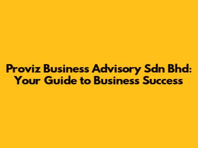 Hey guys! Ever feel like navigating the business world is like trying to find your way through a maze blindfolded? That's where Proviz Business Advisory Sdn Bhd comes in. Think of them as your trusty guide, armed with a map and a flashlight, ready to lead you to success. Let’s dive into what makes them so special and how they can help your business thrive.