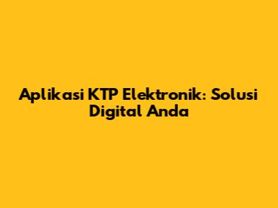Aplikasi KTP Elektronik: Solusi Digital Anda