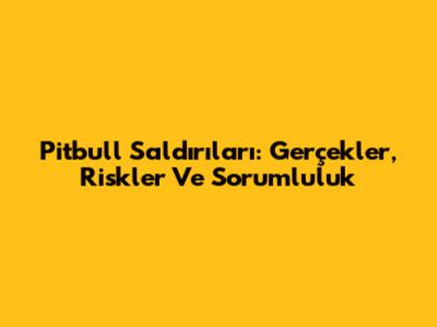Pitbull Saldırıları: Gerçekler, Riskler Ve Sorumluluk