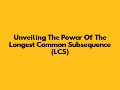 Unveiling The Power Of The Longest Common Subsequence (LCS)