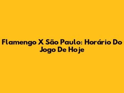 Flamengo X São Paulo: Horário Do Jogo De Hoje