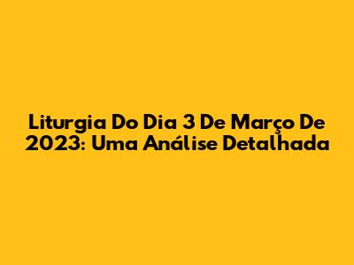 Liturgia Do Dia 3 De Março De 2023: Uma Análise Detalhada