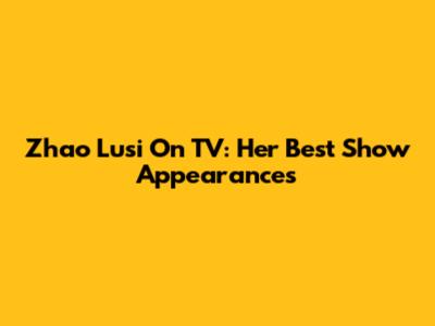 Zhao Lusi On TV: Her Best Show Appearances