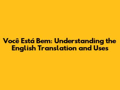 What Does "Você Está Bem" Mean in English?