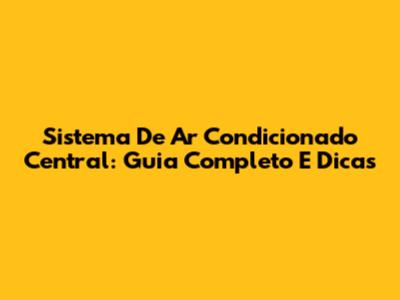 Sistema De Ar Condicionado Central: Guia Completo E Dicas