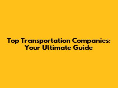 Top Transportation Companies: Your Ultimate Guide