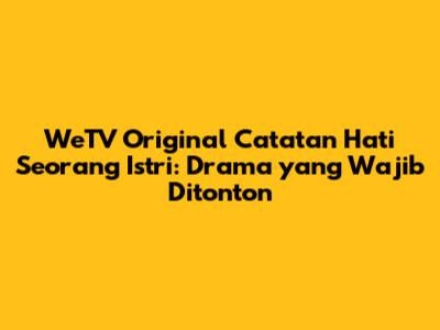 Hey guys! Kali ini kita mau ngobrolin tentang salah satu drama original WeTV yang lagi hits banget, yaitu WeTV Original Catatan Hati Seorang Istri. Buat kalian para pecinta sinetron atau drama serial, ini wajib banget masuk watchlist kalian. Kenapa? Soalnya, drama ini tuh ngangkat cerita yang relate banget sama kehidupan rumah tangga, guys. Kita bakal diajak ngintip daleman hati seorang istri yang seringkali nggak kelihatan di permukaan. Siap-siap baper, terharu, sampai gemes ya!